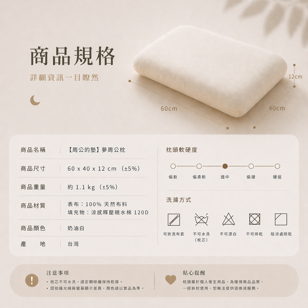 建議定期通風,維持枕芯乾爽並延長使用壽命。